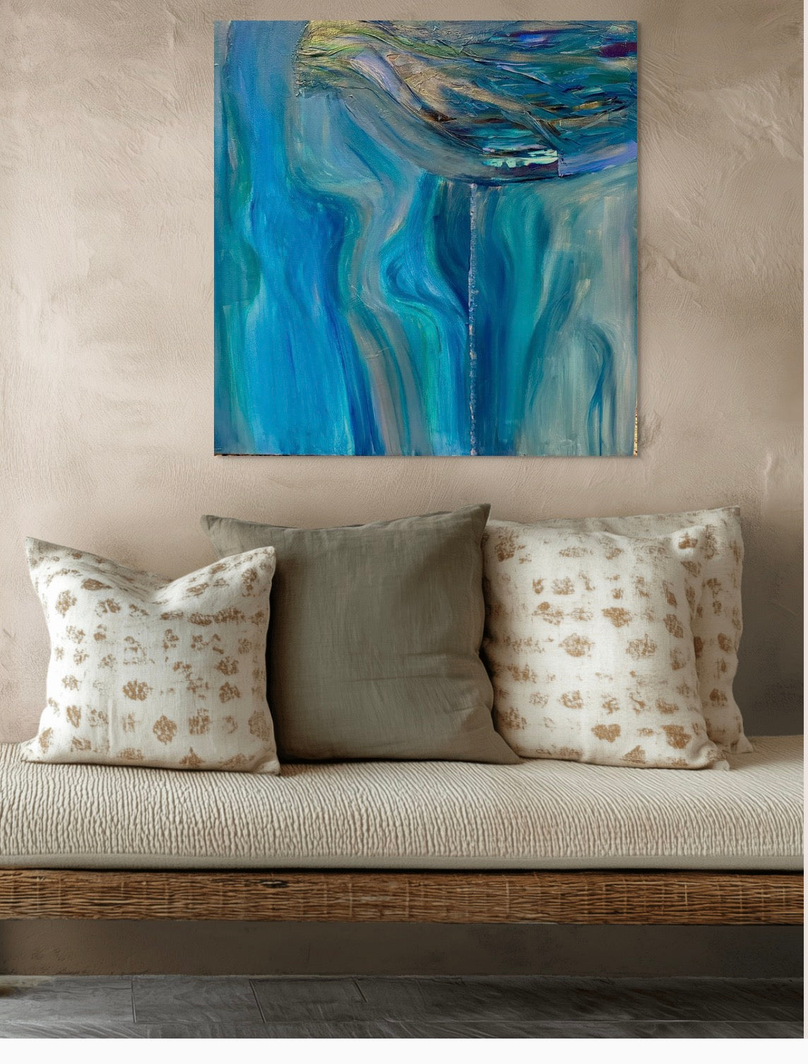Unheld reflects a shift from containment to openness. Vertical movement and subtle interruption evoke the easing of emotional weight—where structure gives way to flow, and becoming replaces holding.